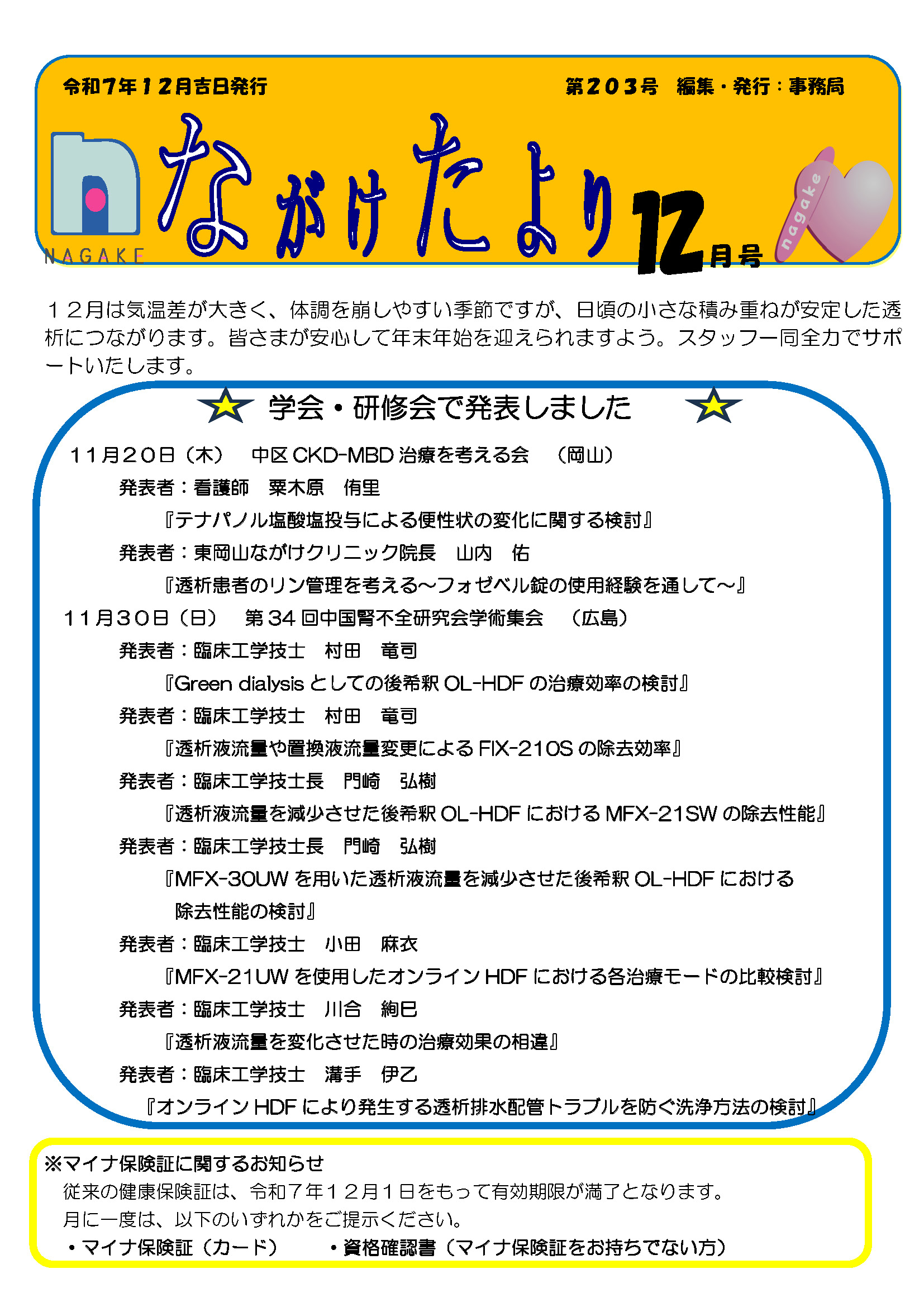 ●2024年度下期 ながけクリニック腎友会・岡山県腎臓病協議会への入会のご案内